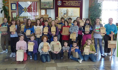 Uczniowie z koła przyrodniczego klas 4-6 po raz trzeci wzięli udział w konkursie zorganizowanym przez Zarząd Rodzimego Ogrodu Działkowego „Budowlani”. W tym roku wykonali 30 budek lęgowych dla nietoperzy. Skrzynki zostaną rozwieszone na terenie ogrodu działkowego, aby w naturalny sposób chronić uprawy przed szkodnikami. Nietoperze bowiem żywią się owadami, których żarłoczne larwy najczęściej niszczą uprawy. Nagrody w konkursie ufundował p. Henryk Matuszak, prezes zarządu. Uczniowie otrzymali cukierki i kolorowe długopisy, a gab. przyrodniczy nową mapę Polski oraz kalendarze.