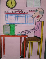 Pan Skubicki a w tle na ścianie lista jego pupili Dobre! |