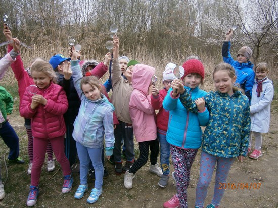 Dnia 07.04.2016 r. klasa II A była na wycieczce w Parku Słowiańskim. Dzieci zabrały ze sobą różne przyrządy do obserwacji przyrody: lupy, lornetki i kompasy. Tego dnia dzień był piękny i słoneczny. Klasa II A wybrała się na wiosenną wycieczkę do Parku Słowiańskiego. Dzieci szukały oznak wiosny. Mateusz znalazł małe białe kwiatki na drzewach. Obserwował je przez lupę. Ania zobaczyła małego bociana lecącego w górze.